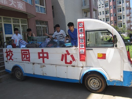 在得知生物党支部员工搬迁工作后,后勤集团校园服务中心党支部立即安排校园电瓶车协助员工搬运行李。在行李搬运前,校园电瓶车已开至员工公寓10栋门口,在同学们放好行李后,插上党旗的电瓶车好比一面飘扬的党旗,满载员工的行李开往员工公寓7栋,温暖着每位同学们的心。