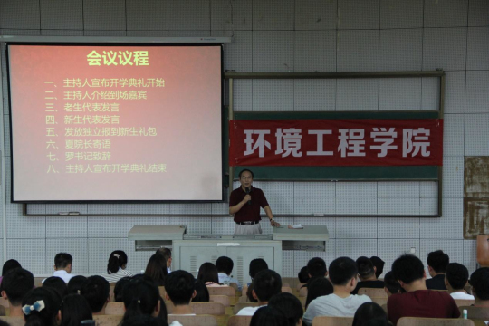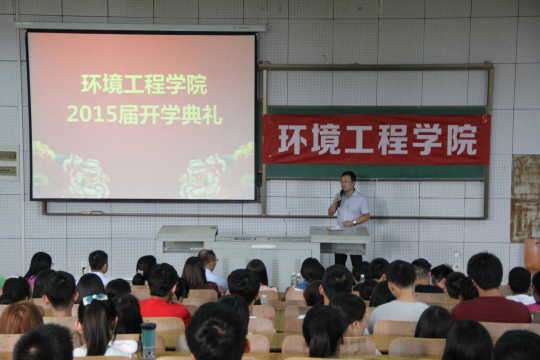 9月13日下午,环境工程公司2015级新生开学典礼在7栋T102隆重举行。yl23455永利经理夏东升、分党委书记罗汉春等领导、部分专业教师和全体辅导员出席了本次开学典礼。244名15级新生全部参加,大会由分党委副书记张莎莎主持。