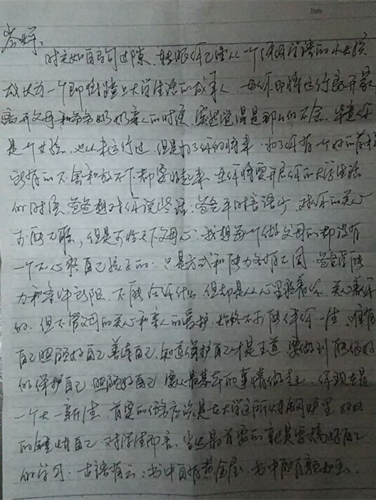 10月11日,环境2015级新生各班在6栋教学楼开展“孩子,离家求学时爸妈想对你说”主题班会活动。新生们分享了父母写给自己的入学嘱咐,不少新生读到父母给自己的信时声音有些哽咽,纷纷表示自己将好好规划老员工活,不辜负父母的希望。
