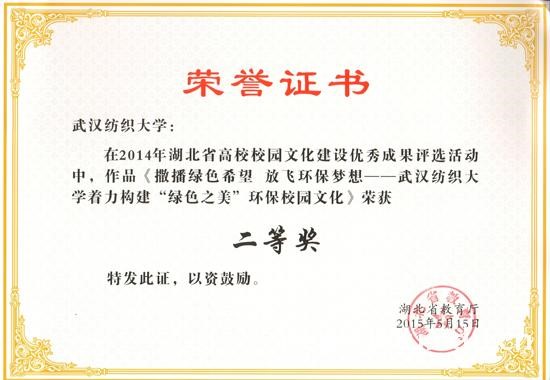 2.《撒播绿色希望放飞环保梦想--永利官网着力构建“绿色之美”环保校园文化》获湖北省高校校园文化建设优秀成果二等奖。