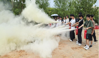 理论学习的目的在于应用,在保卫处相关老师的示范和指导下,同学们分批上前,参与灭火实操环节,从“提、拔、握、压”四个步骤,到对准火焰根部进行喷射,同学们在模拟火场前沉着冷静,严格按照操作要领,成功将“火情”扑灭。这种“零距离”的体验,使新生们真正掌握了灭火器的使用方法,克服了面对火情的畏惧心理。