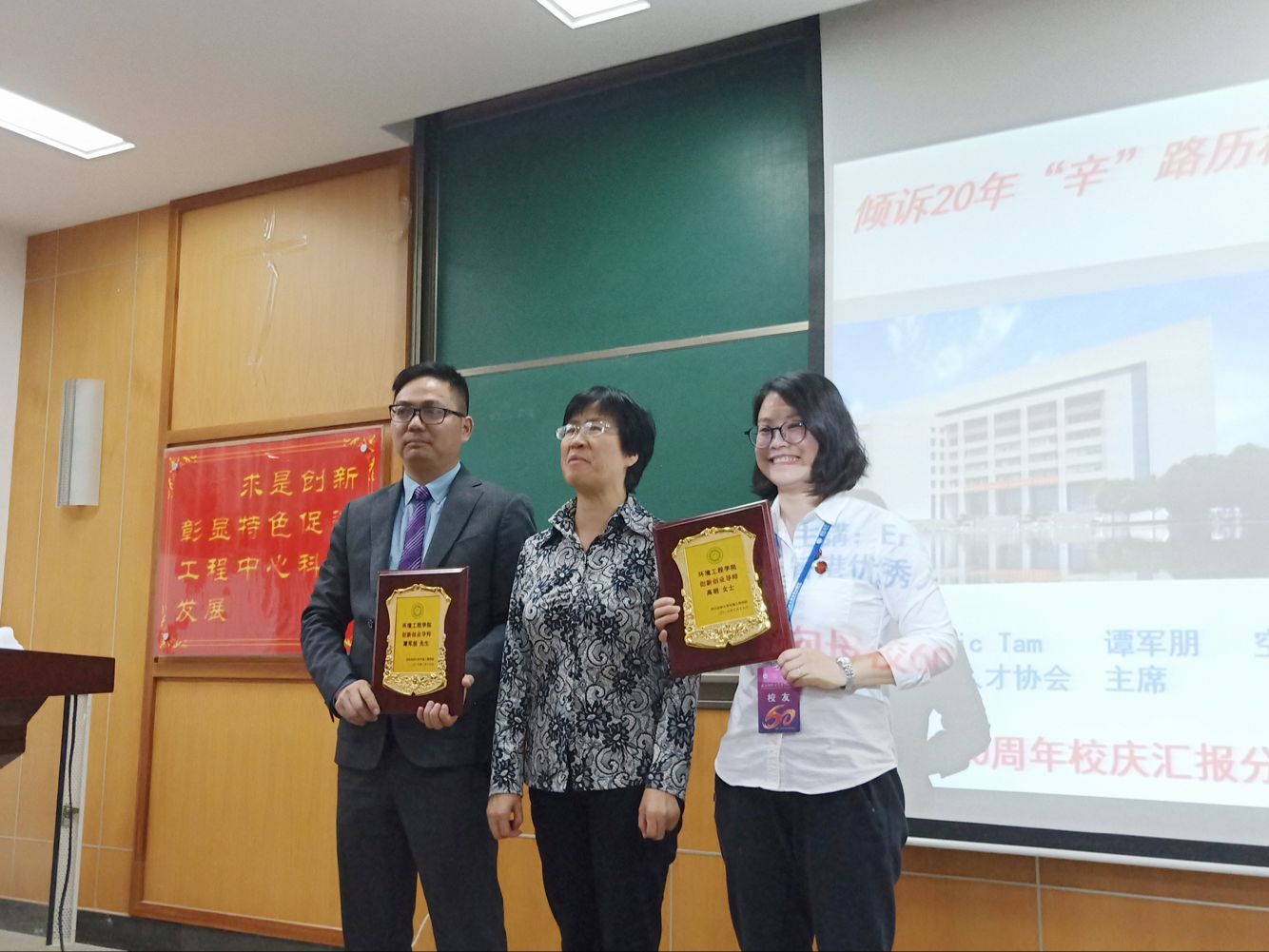 讲座结束后,公司党委书记谢晓萍为两位优秀员工授牌,聘任为环境工程公司创新创业导师。