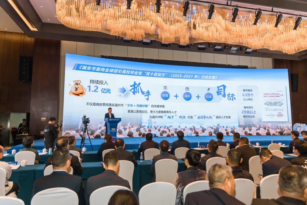 本次大会由温州市人力资源和社会保障局、瑞安市人民政府联合主办,以“来温州・创未来”“双强汇聚・两业融合”为主题,集结近千家行业领先企业、超百所国内外院校及十余家优质人力资源服务机构。