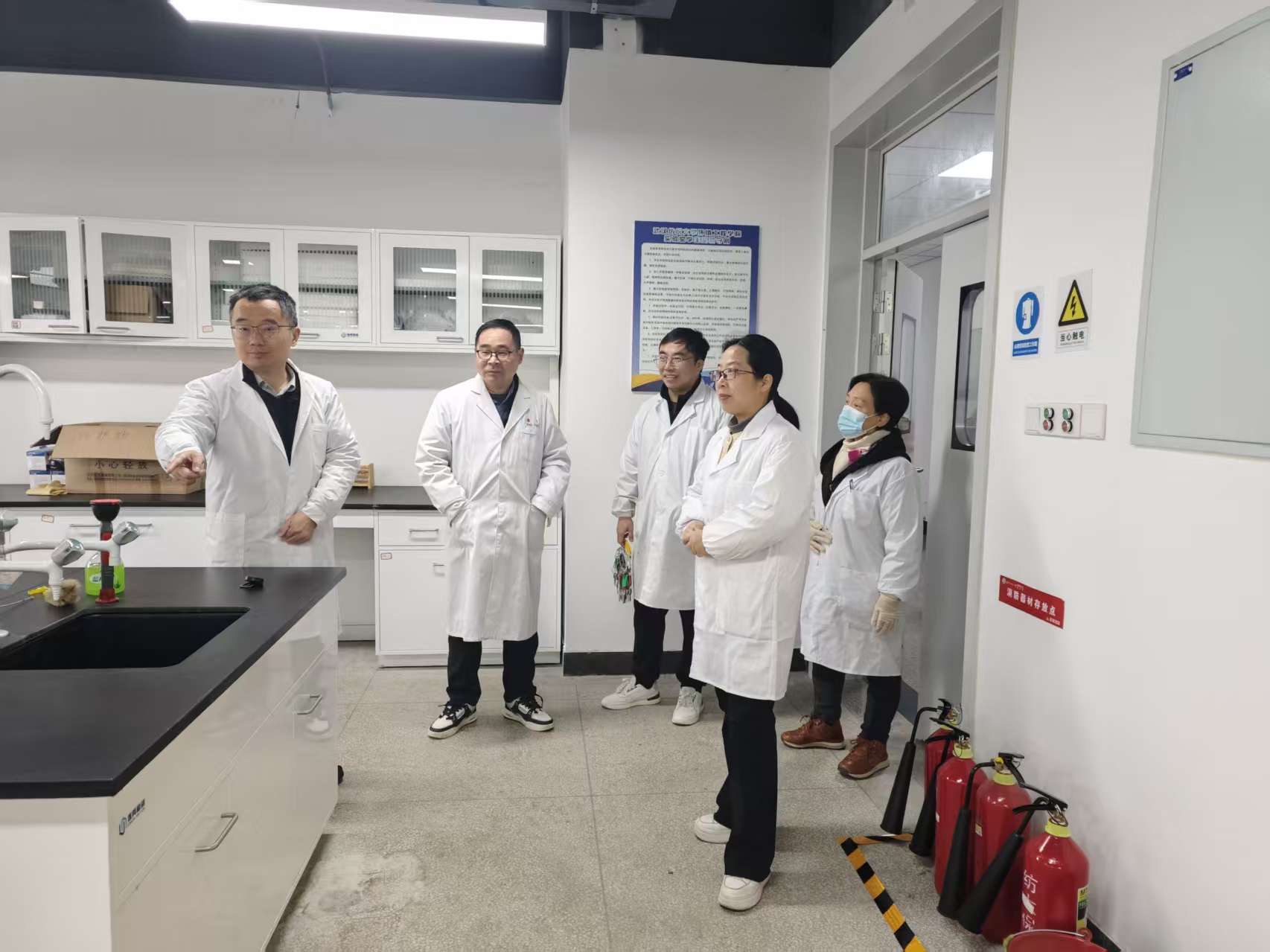 检查过程中,潘飞经理深入了解了实验室的运行情况和实际需求,强调要把实验室安全摆在首位、落到实处。郭俊书记询问了实验室管理人员的工作情况,对大家的辛勤付出表示感谢,并勉励大家继续保持高度责任心。蔡亚君副经理重点查看了危险化学品存储、废液处理、安全设施配备等关键环节,要求进一步完善安全管理制度。