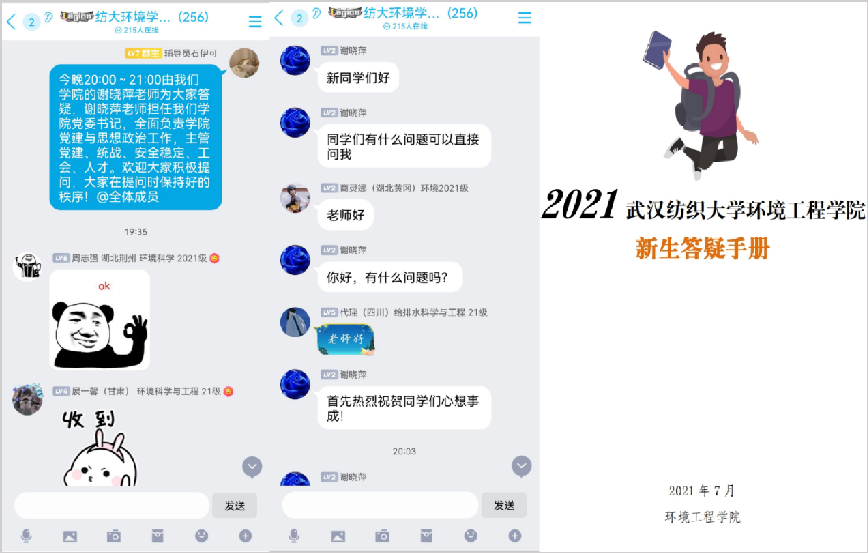 8月6日起,为期20天的线上答疑陆续展开,“老师,给排水科学与工程专业考研的话可以考哪个方向?”“老师,想入党需要具备什么条件?”“学长,公司宿舍是什么样子的呀?”……新生们在群里积极提问,得到了答疑老师和学长的积极回应,就新生关心的报到流程、专业知识、老员工涯规划等答疑解惑。