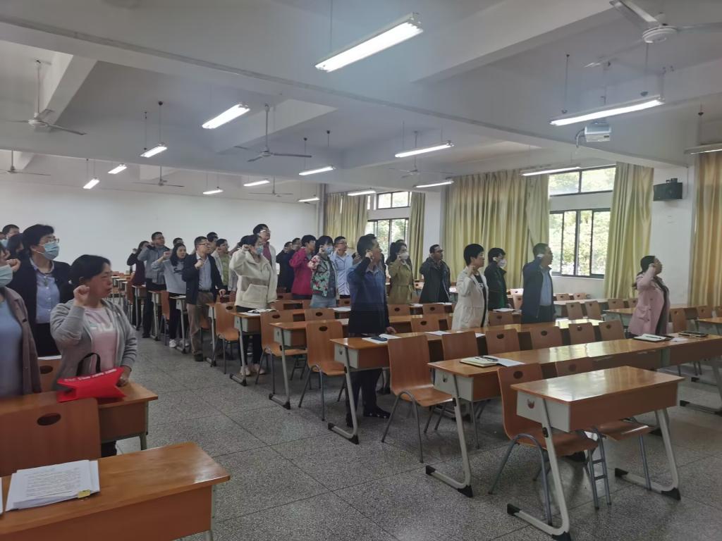 公司副经理蔡亚君带领全体教师庄严宣誓,嘹亮的声音、铿锵有力的誓词表达了公司全体教师对党的教育事业的忠诚和履行教师的神圣职责的决心。