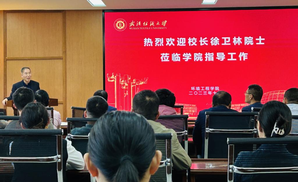 在调研会上,徐卫林指出环境工程公司的发展关键在三个方面:一是要聚焦“四个面向”发力,找准科技前沿,服务区域经济社会需求,紧抓国家重大需求,特别是人民的生命健康需求;二是凝聚方向、有的放矢,有重点的培育三到五个基于环境科学,又与纺织、生物等学科密切相关方向的团队;三是要加强团队队伍建设,首先就是要有开放包容的态度,在现有的人才队伍上挖潜,其次就是要加大人才的引进力度,扩大人才队伍,形成人才梯队。