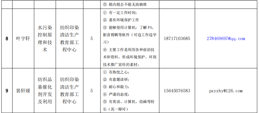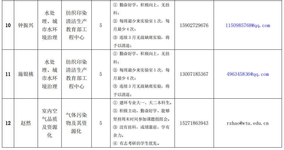 公司经过前期招募意愿征集,12名老师共需招募72名员工助手(详情见下表),欢迎有致力于从事科学研究的同学,根据表中要求、联系方式咨询对应老师(排名不分先后),由老师根据报名情况择优选拨。