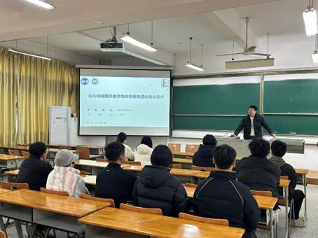 活动中,王腾老师从石化领域固体废弃物的现状与问题到讲其破局思路,对石化领域固体废弃物的协同高值化转化技术展开了详细的讲解,最后,同学们踊跃提问,围绕技术应用前景等问题展开交流,王腾老师逐一细致解答。