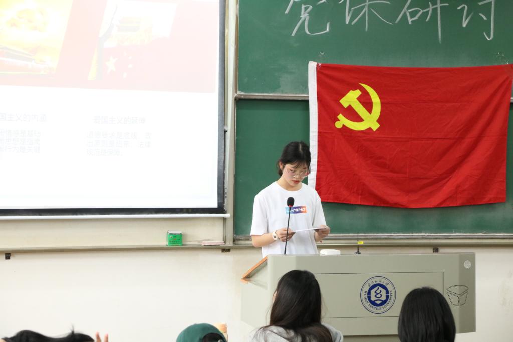 给排支部二组a组组长钟雨洁结合所在院部实际情况以及专业特点进行发言:“当前,国家要在保证经济发展的同时兼顾对生态平衡的保证,身为给排水专业的一名入觉积极分子,我们可以利用自己的专业来为人民服务,为国家服务。因此我们更应该牢记自己的使命,努力学习专业知识理论,为国家做出该有的贡献。”