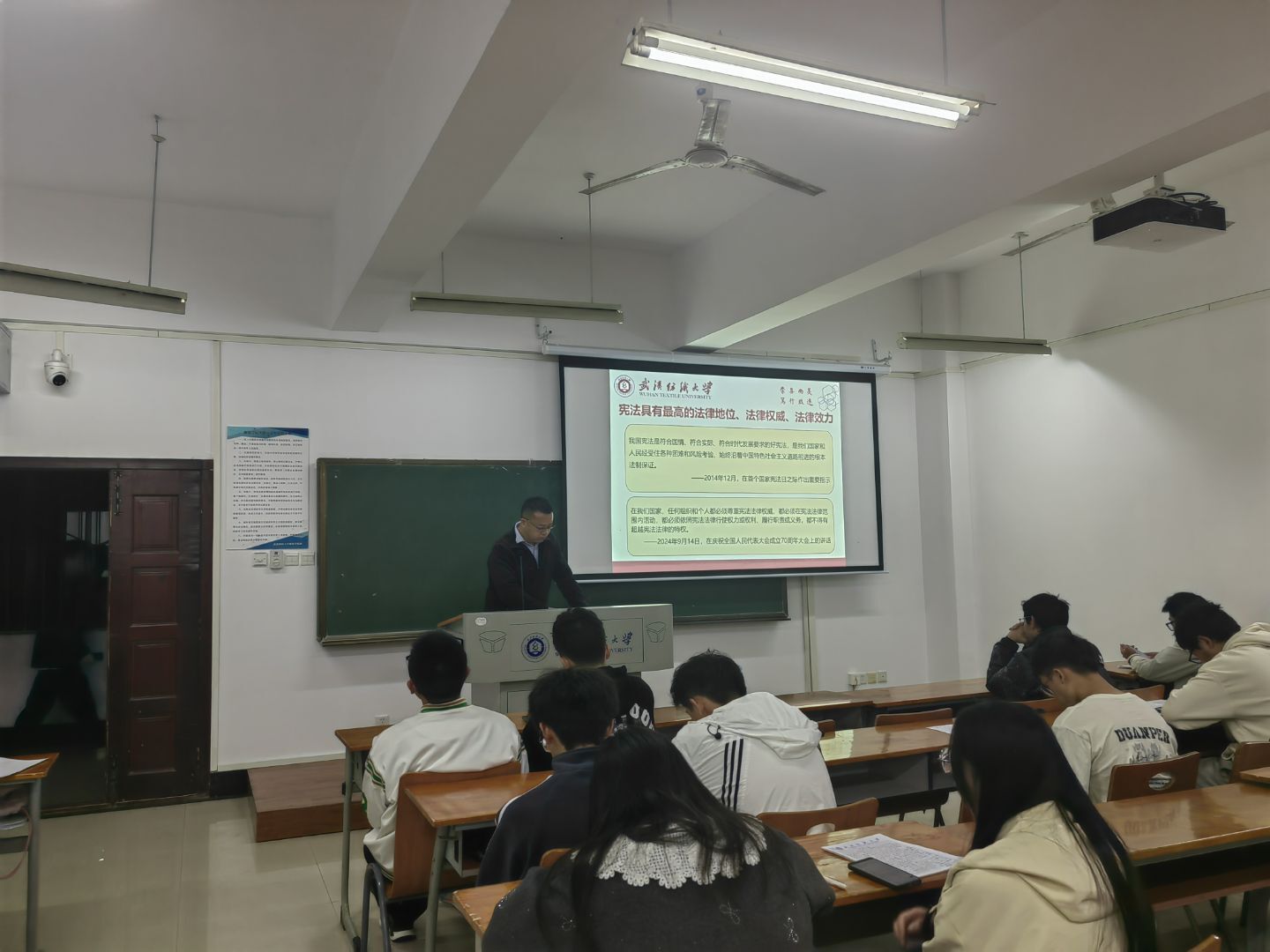 班会结合“国家宪法日”和“宪法宣传周”的背景,介绍了我国宪法的发展历程和现行宪法的基本框架,引导员工理解宪法与每个人一生的密切联系。从平等权、人身自由到监督权,从受教育权到遵守宪法义务,同学们认识到宪法不仅是国家治理的总章程,更是保障公民权利的根本依据。班会还积极动员员工参与“宪法晨读”、“宪法卫士”等线上线下教育活动,鼓励同学们通过教育部全国青少年普法网等平台深入学习宪法知识,增强法治素养,争做宪法的忠实崇尚者、自觉遵守者和坚定捍卫者。
