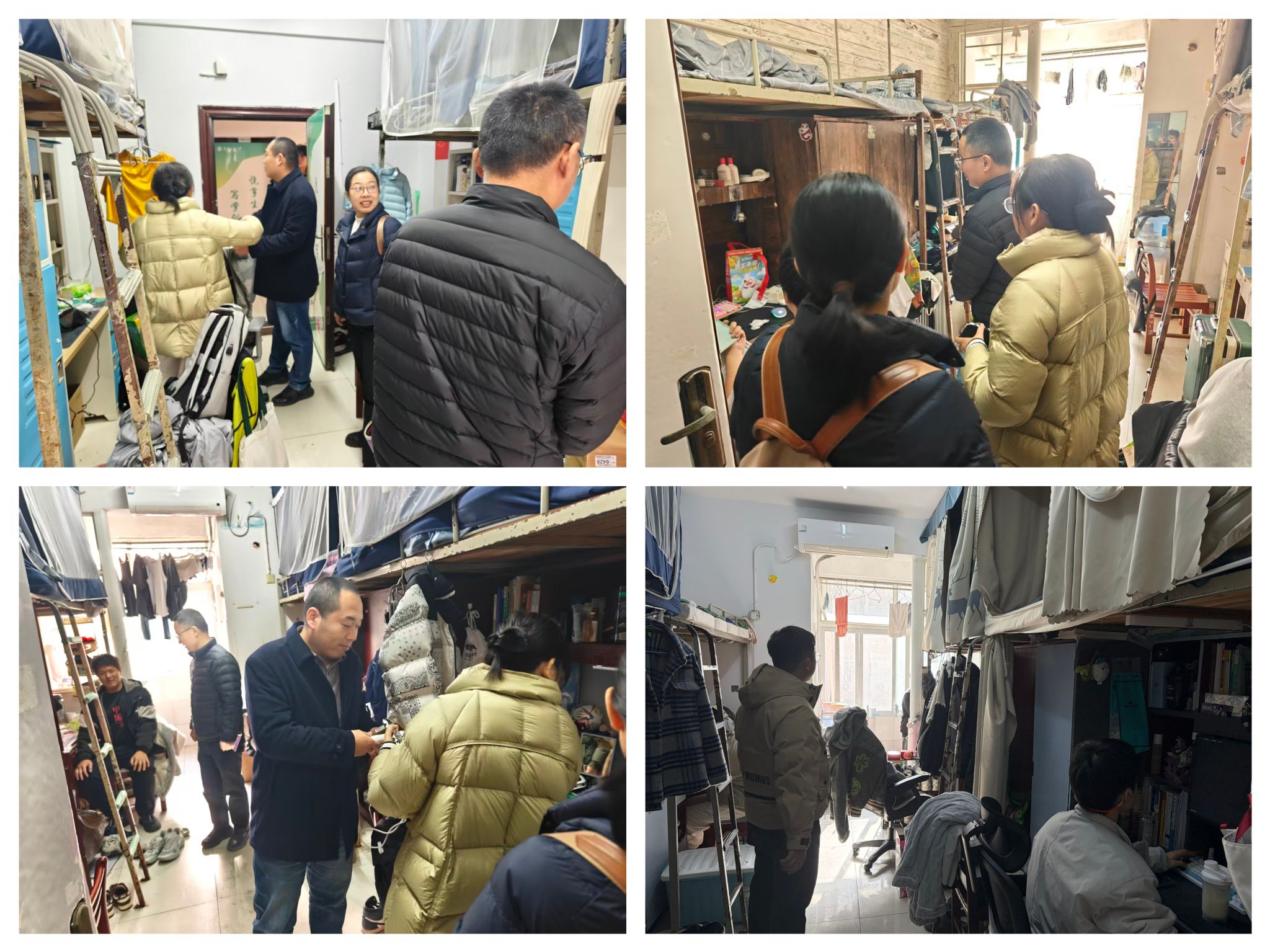 为切实筑牢校园安全防线,落实平安校园建设相关要求,保障节日期间员工宿舍安全稳定,在元旦假期来临之际,公司党委书记郭俊带队,公司领导班子、全体辅导员、员工骨干深入员工宿舍开展宿舍安全专项排查,并走访了结对宿舍。